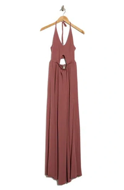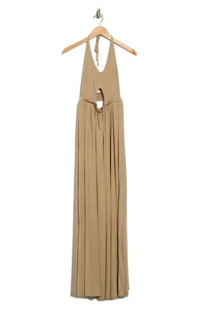 Keyhole Halter Jersey Maxi Dress In Brown
