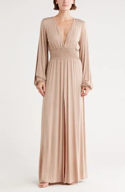 Long Sleeve Maxi Dress In Brown