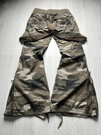 Pre-owned G.o.a Suspenders Camo Zipper Flared Cargo Pants In Multi