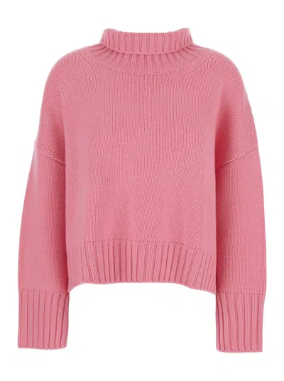 Girlfriend Pink Turtleneck Sweater With Ribbed Trims In Cashmere Woman