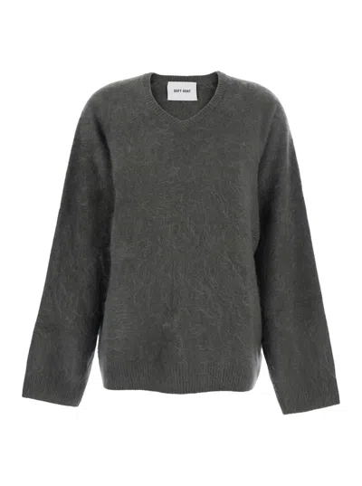 Grey Sweater With V Neck And Brushed Effect In Cashmere Woman In Gray