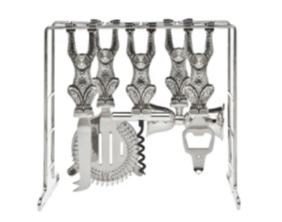 9-piece Hammered Shiny Bar Tool Set In Silver
