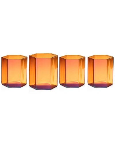 Set Of 4 Helix Amber Highballs In Brown