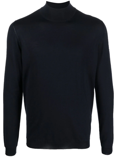 Fine-knit High-neck Jumper In Blue