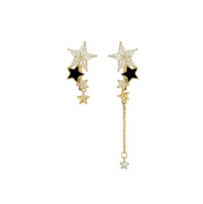 Women's Gold / Black Star Asymmetric Drop Clip On Earrings In Gold