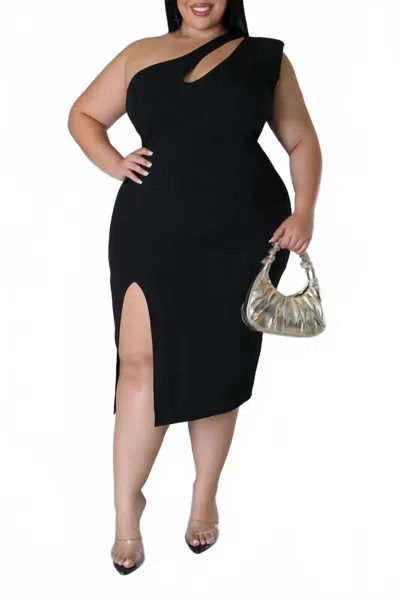 Emma One Shoulder Cut Out Dress With Side Slit In Black