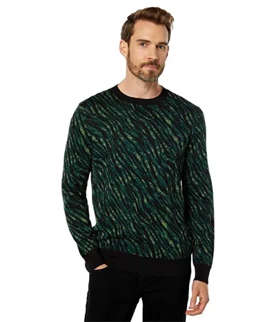 Good Man Brand Sweater Men's Green Zebra Jacquard Crew Neck Pullover Gbo83 In Black