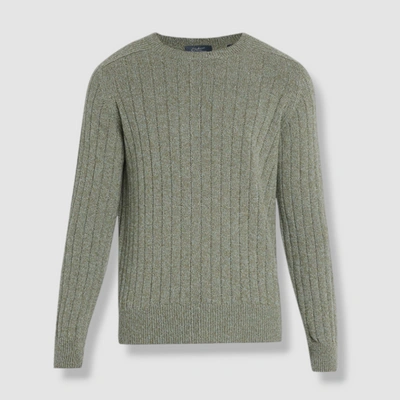 Pre-owned $795 Bergdorf Men's Green Cashmere Ribbed Crewneck Sweater Size X-large