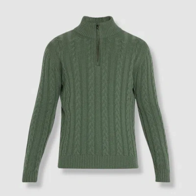 Pre-owned $895 Bergdorf Men Green Cable Knit Cashmere Rib Half-zip Sweater Sz L