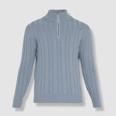 Pre-owned $895 Bergdorf Mens Blue Cable-knit Cashmere Ribbed Half-zip Sweater Sz L