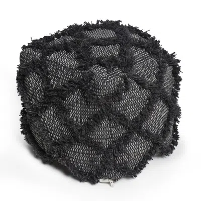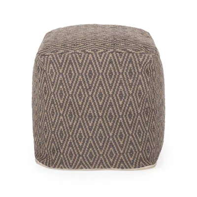 Hand-loomed Cotton Pouf With Diamond Pattern