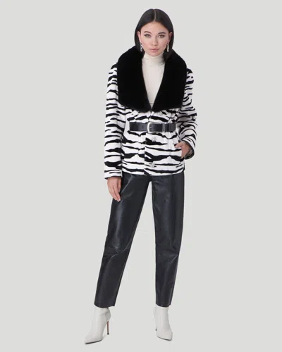 Chinchilla And Lamb Short Coat With Stand Collar In Multi