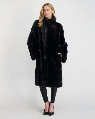 Mink Jacket With Stand Up Collar And Leather Belt In Black