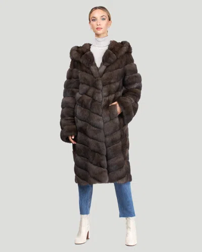 Horizontal Russian Sable Coat With Hood And Leather Belt In Multi