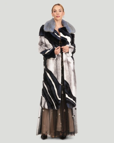 Wave Intarsia Mink Short Coat With Detachable Sable Collar In Multi