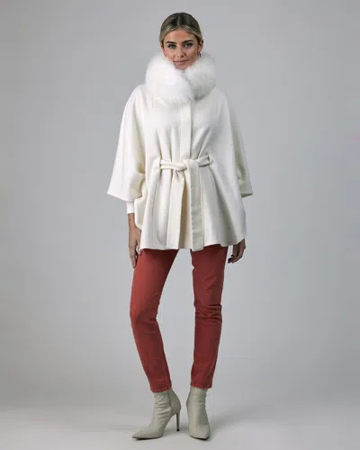Wool Belted Cape With Shadow Fox Collar In Multi