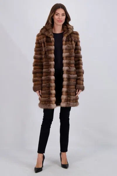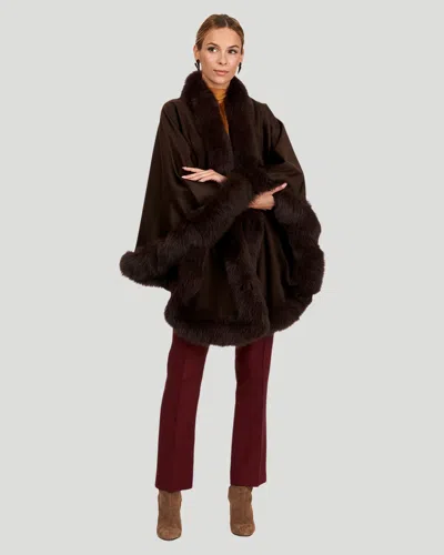 Double Face Cashmere Stole With Rex Rabbit Trim In Brown