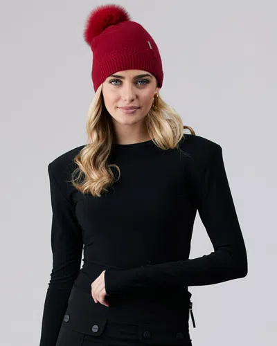 Knit Cashmere Hat With Fox Fur Pompom In Red