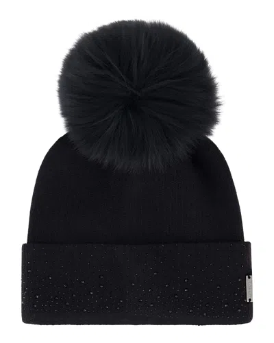 Metallic Wool Blend Hat With Fox Pompom In Black