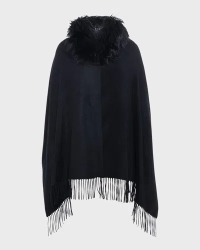 Cashmere & Wool Cape With Lamb Trim In Blue
