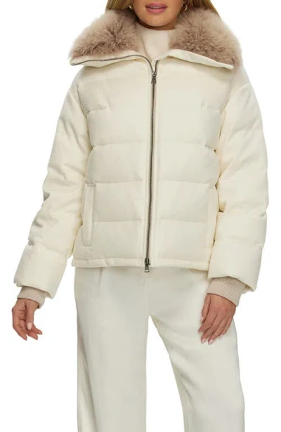 Apres-ski Down Filled Vest With Detachable Toscana Lamb Hood Trim In Ivory / Whiskey