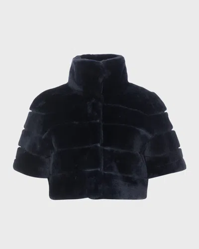 Reversible Lamb Shearling Bolero Jacket With Cropped Sleeves In Navy