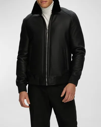 Genuine Shearling Chevron Jacket, Horizontal Bottom And Reversible In Black