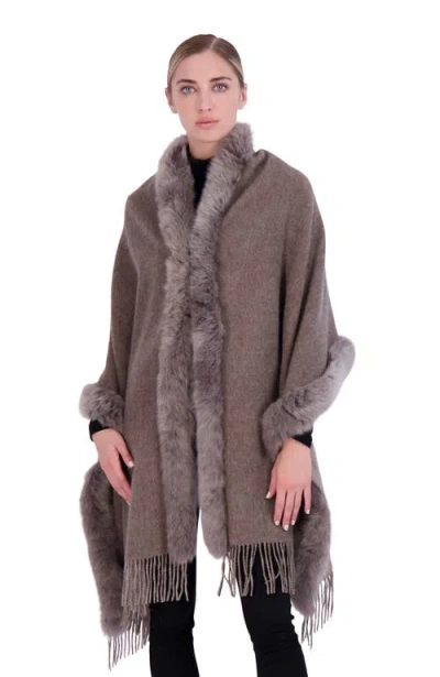 Select Double Face Wool/cashmere Stole With Lamb Trim In Brown