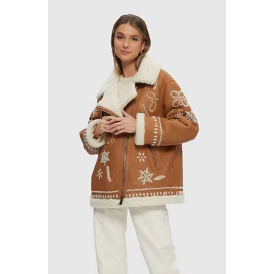 Genuine Shearling Insignia Jacket, Hood, Reversible In Brown