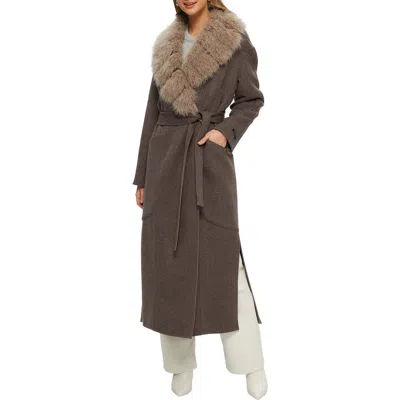 Double Face Wool And Cashmere Coat With Detachable Genuine Shearling Collar With Belt In Brown