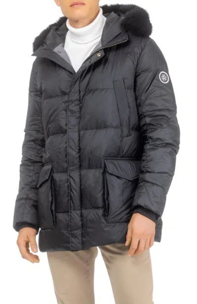 Mens Apres-ski Jacket With Detachable Genuine Shearling Hood Trim In Black