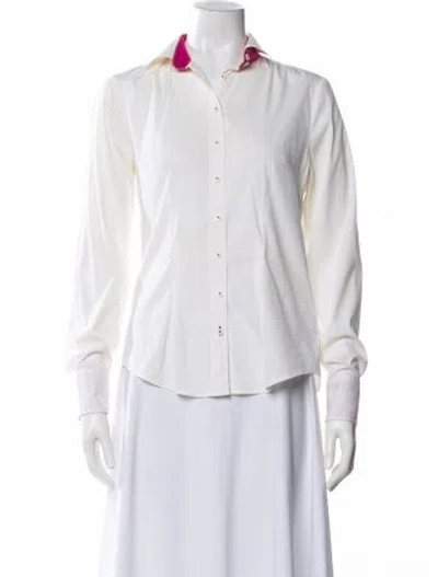 Pre-owned Long Sleeve Button-up Top In White