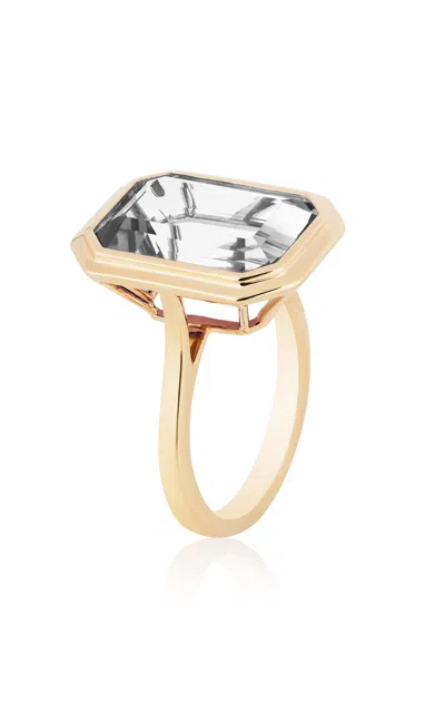 18k Yellow Gold Rock Crystal Ring In Gray