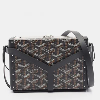Pre-owned Minaudiere Trunk Black Brown White Canvas Leather Shoulder Bag