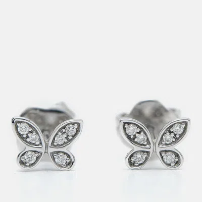 Pre-owned Butterfly Pavé Diamond 18k White Gold Small Stud Earrings