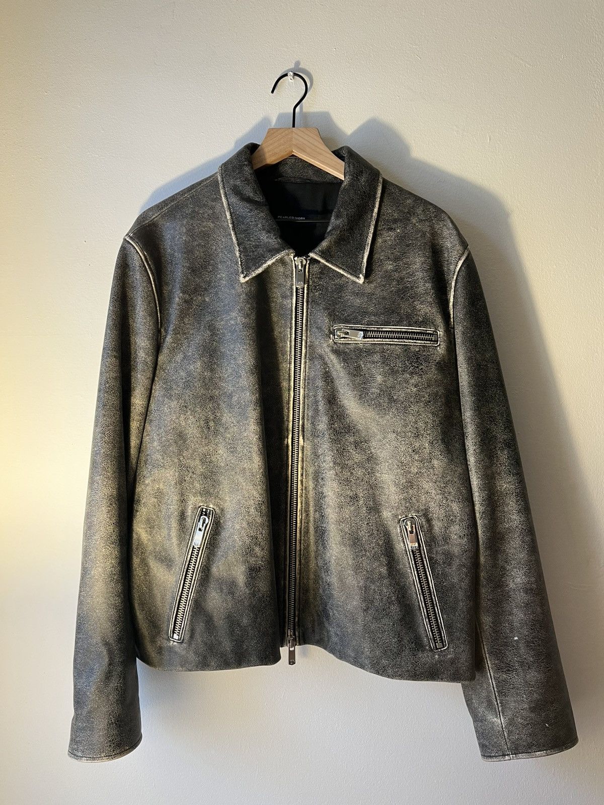 Pre-owned Xs Premium Bleach Distressed Bikers Denim In Blue