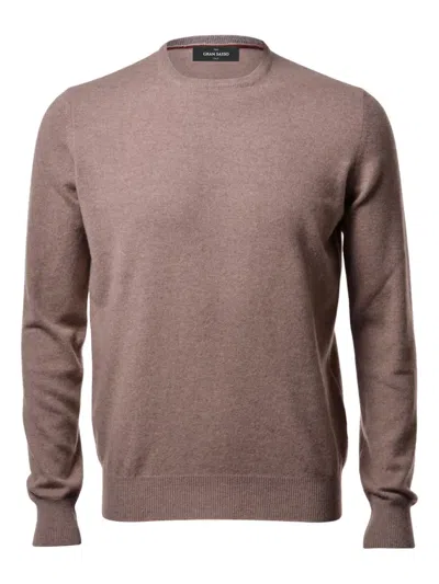 Crewneck Knitted Jumper In Brown