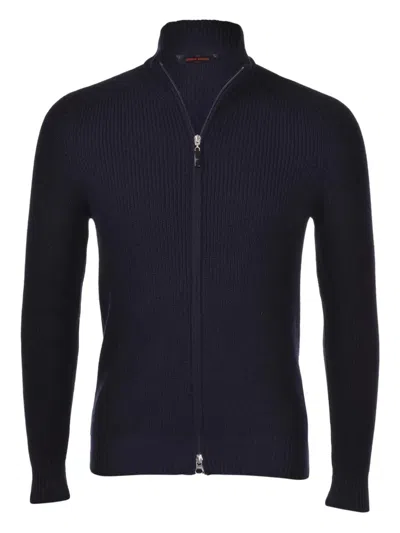Navy Blue Cashmere Crew Neck Sweate In Multi
