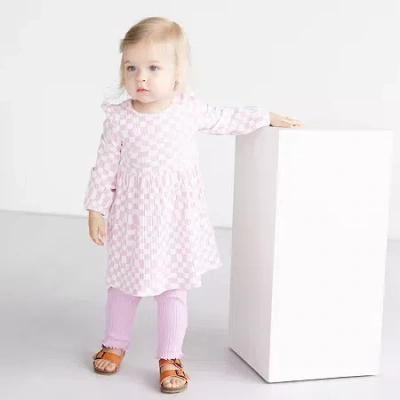 Baby Girls Rib Knit Checked 2-pc. Dress Set In Pink