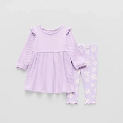 Baby Girls Ruffled Rib Knit 2-pc. Dress Set In Purple