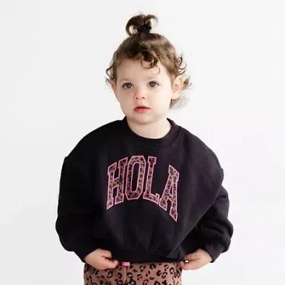 Babies' Toddler Girls Crew Neck Fleece Long Sleeve Sweatshirt In Black