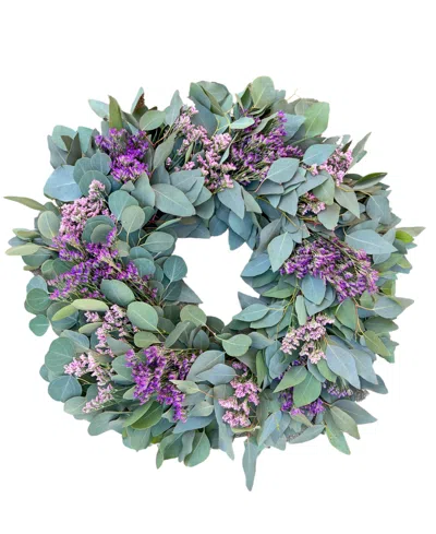 Real Misty Flower Limonium Fresh Spring Wreath, 20" In No Color