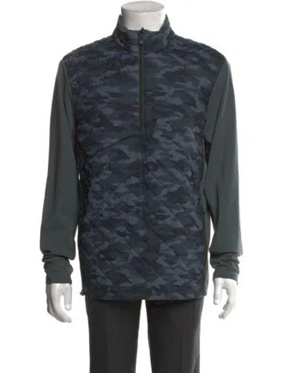 Pre-owned Camouflage Print Mock Neck Cardigan In Blue