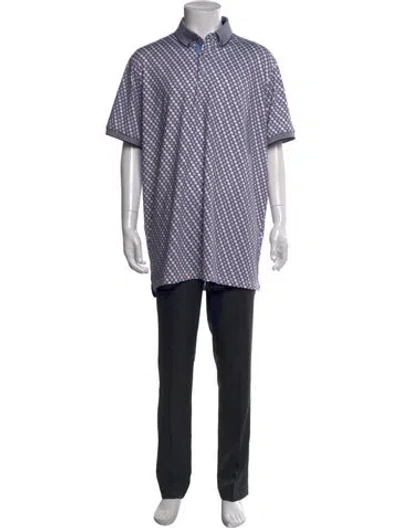 Pre-owned Printed V-neck Polo Shirt In Blue