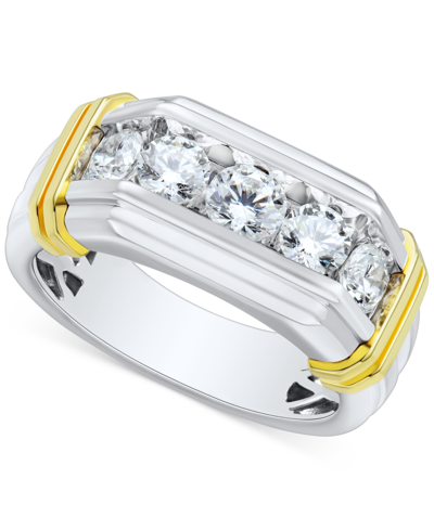 Men's Lab Grown Diamond Horizontal Five Stone Ring (1-1/2 Ct. T.w.) In 10k Two-tone Gold In White Gold