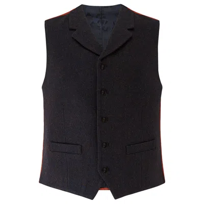 Men's Blue Sherwood Tweed Wool Waistcoat - Navy Herringbone
