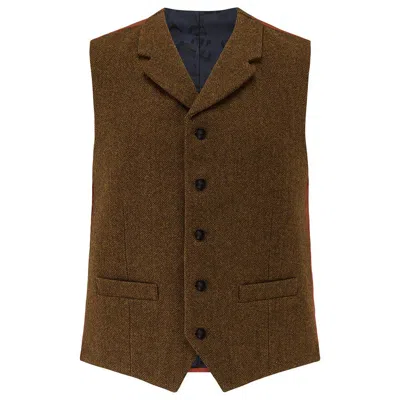 Men's Sherwood Tweed Wool Waistcoat - Brown Herringbone