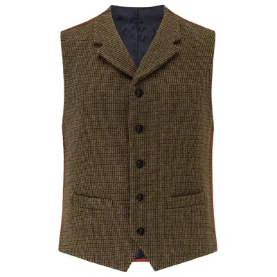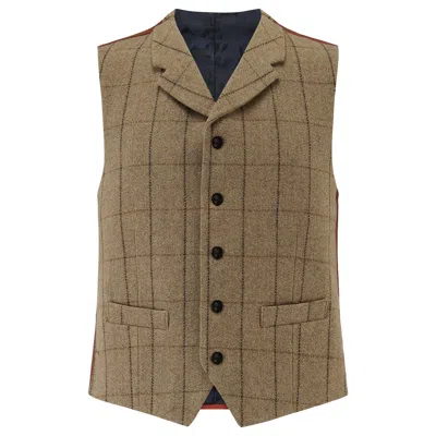 Men's Yellow Sherwood Tweed Wool Waistcoat - Tan Windowpane