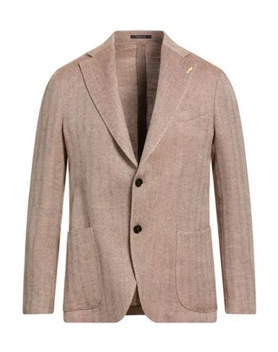 Man Blazer Camel Size 44 Cotton, Linen In Pink