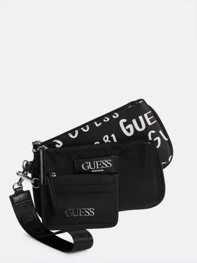 Avelina Rhinestone Logo Double-zip Crossbody In Black